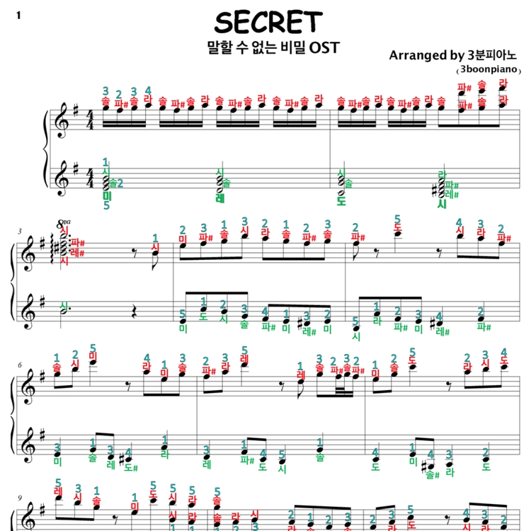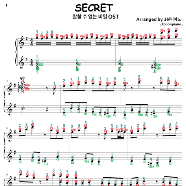 - 악보는 영상과 같습니다. (일반악보는 계이름과 손가락번호가 적혀있지 않습니다.)