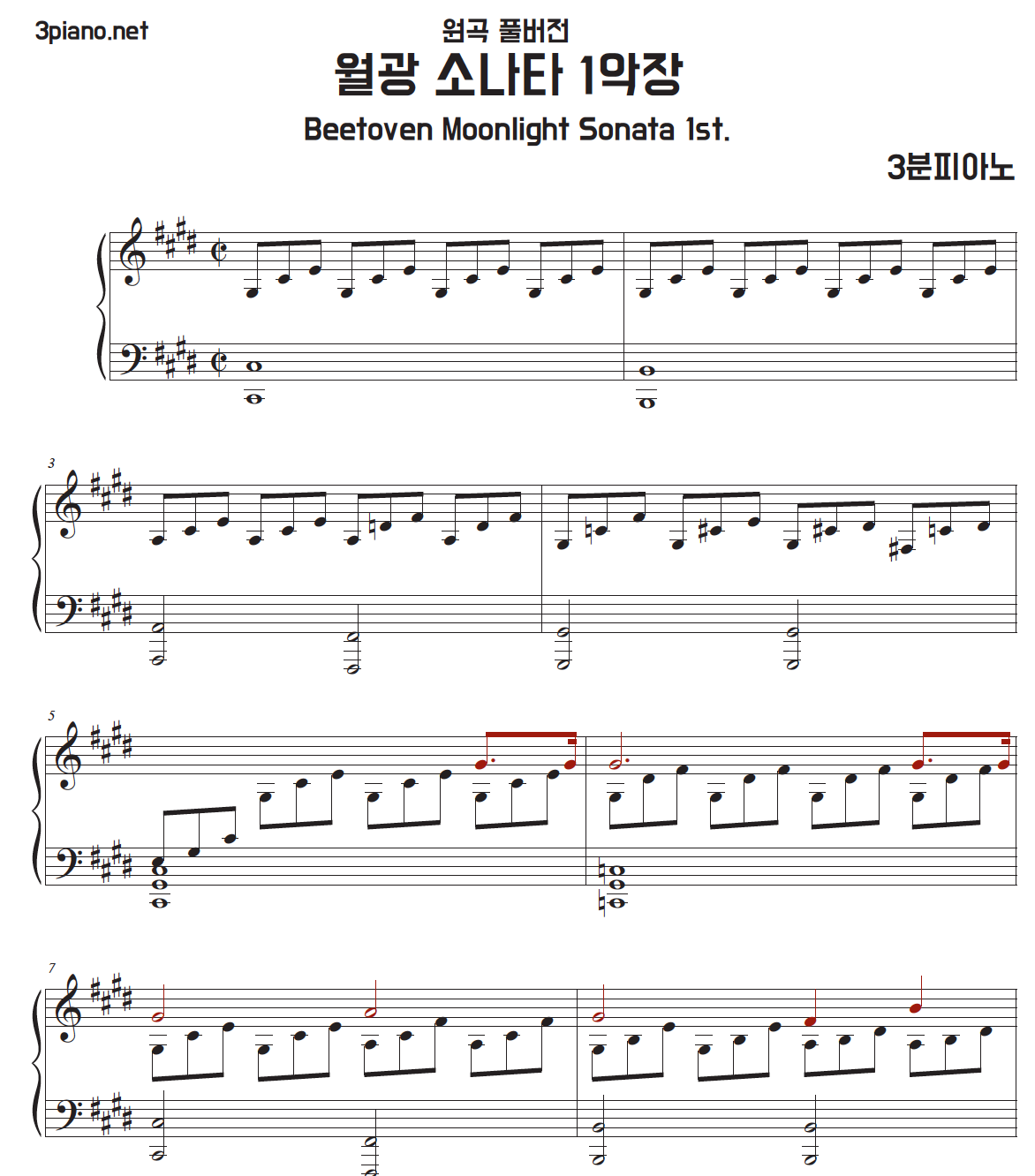 Also, the main melody of the 1st movement of Moonlight Sonata is drawn with red notes!