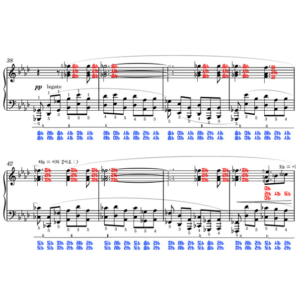 손가락번호, 페달, 프레이즈, 셈여림 또한 모두 표기되어 있는