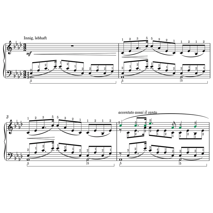 - 손번호, 페달, 셈여림이 모두 적혀있고,
