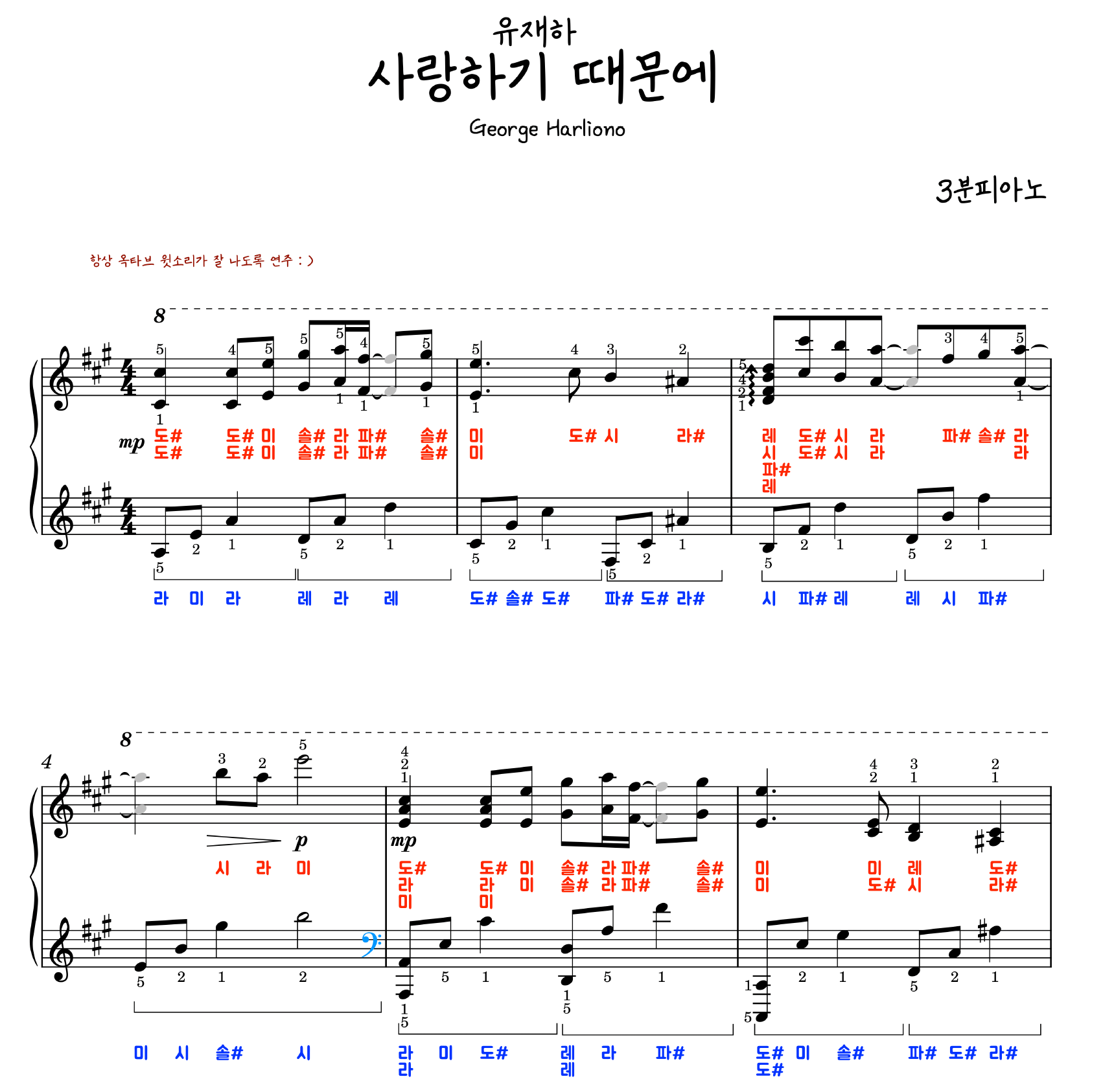 사랑하기 때문에 피아노 악보 (계이름 악보) | 유재하, George Harliono(조지 할리오노)